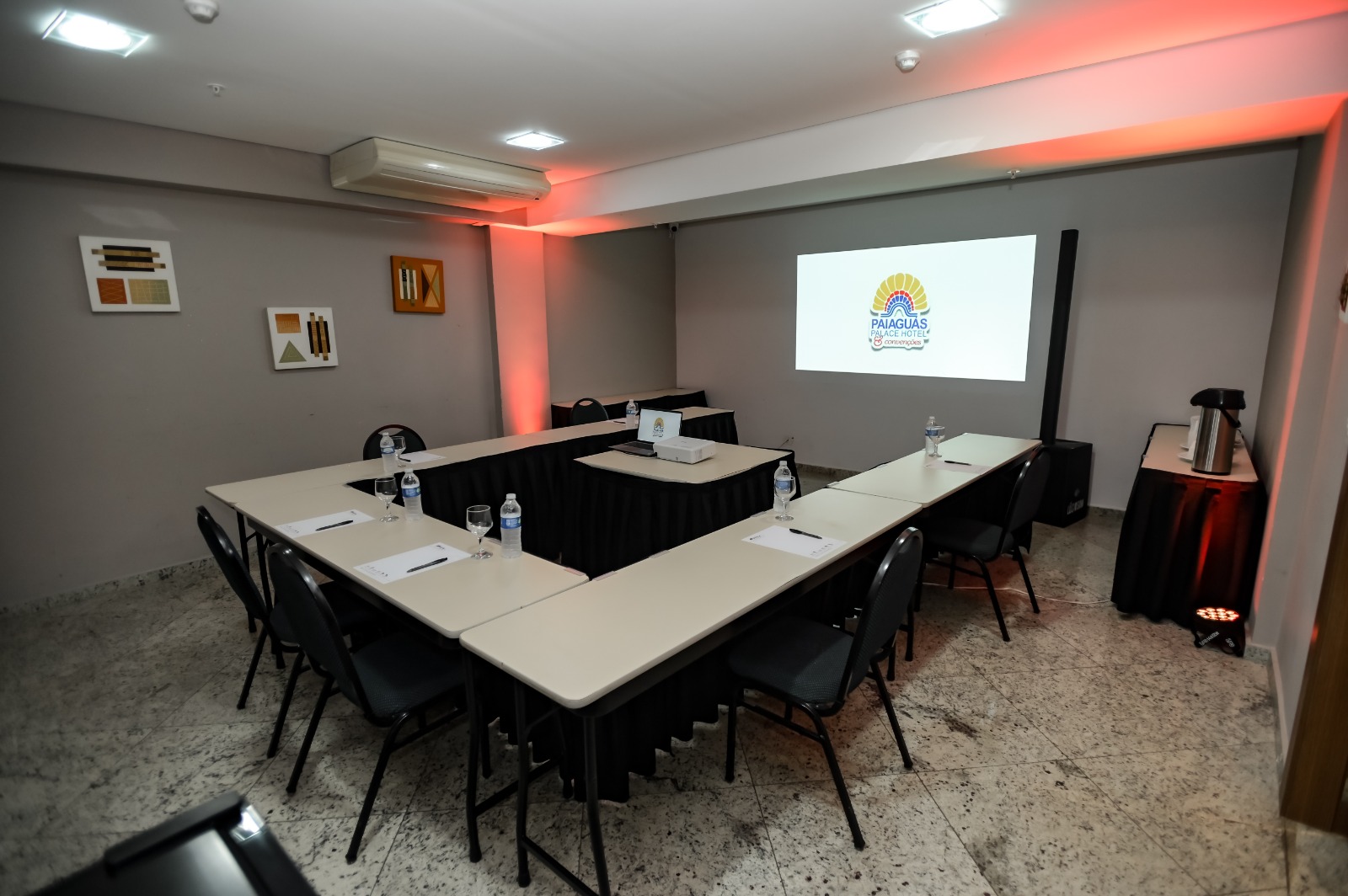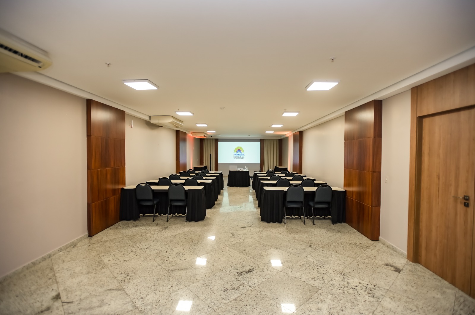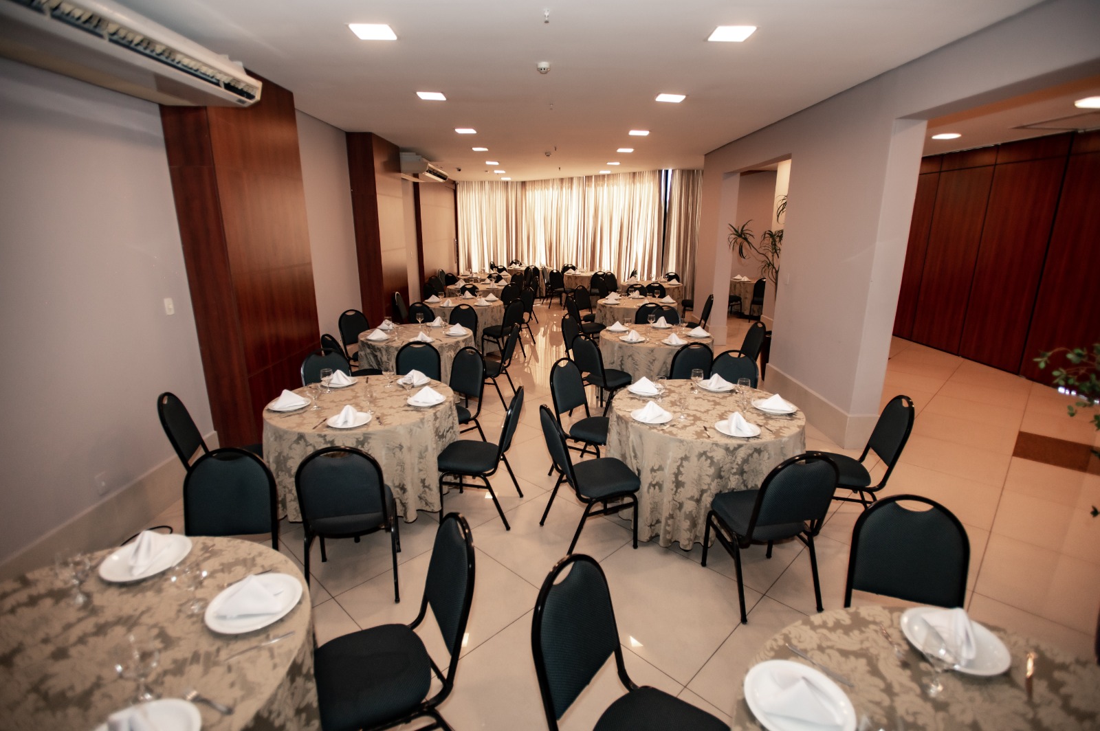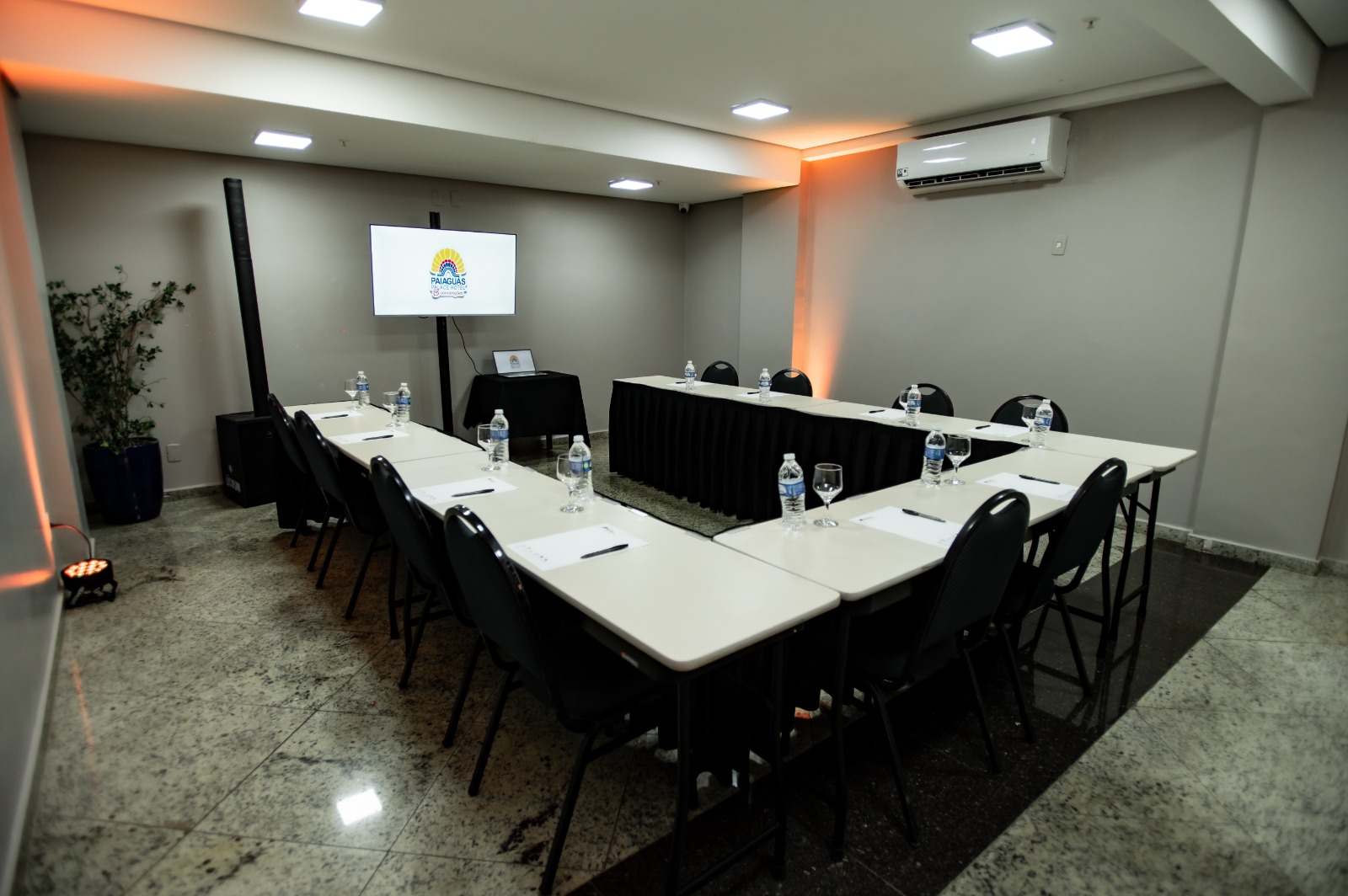 Eventos: Seja para uma reunião ou um evento, o Hotel conta com 09 salas, equipadas com tecnologia de ponta, todas climatizadas, ramal telefônico e internet a cabo e sem fio, a sala maior comporta até 200 pessoas.