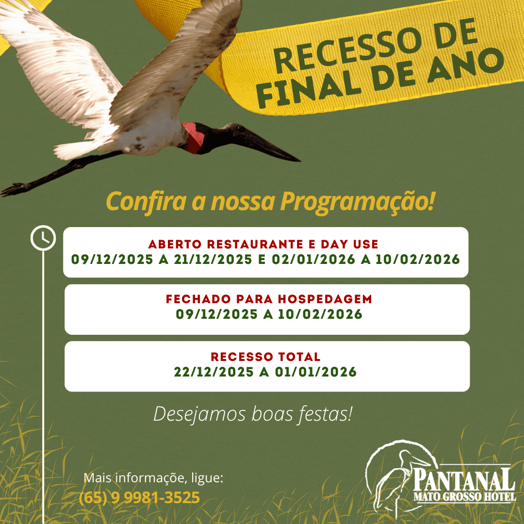Venha conhecer o que há de mais belo no nosso Pantanal, desfrutar da natureza e relaxar em meio à fauna e flora abundante com sua família ou amigos, tudo isso com uma estrutura completa que irá garantir sua segurança e tranquilidade.